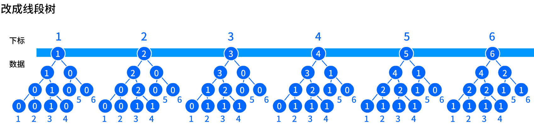 我认为我其实是对这颗线段树做了6次插入操作。我现在希望这六次操作后得出来的新线段树都能保存下来,也就是要保存六个线段树。
